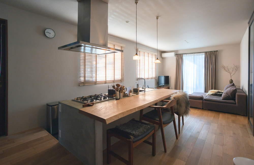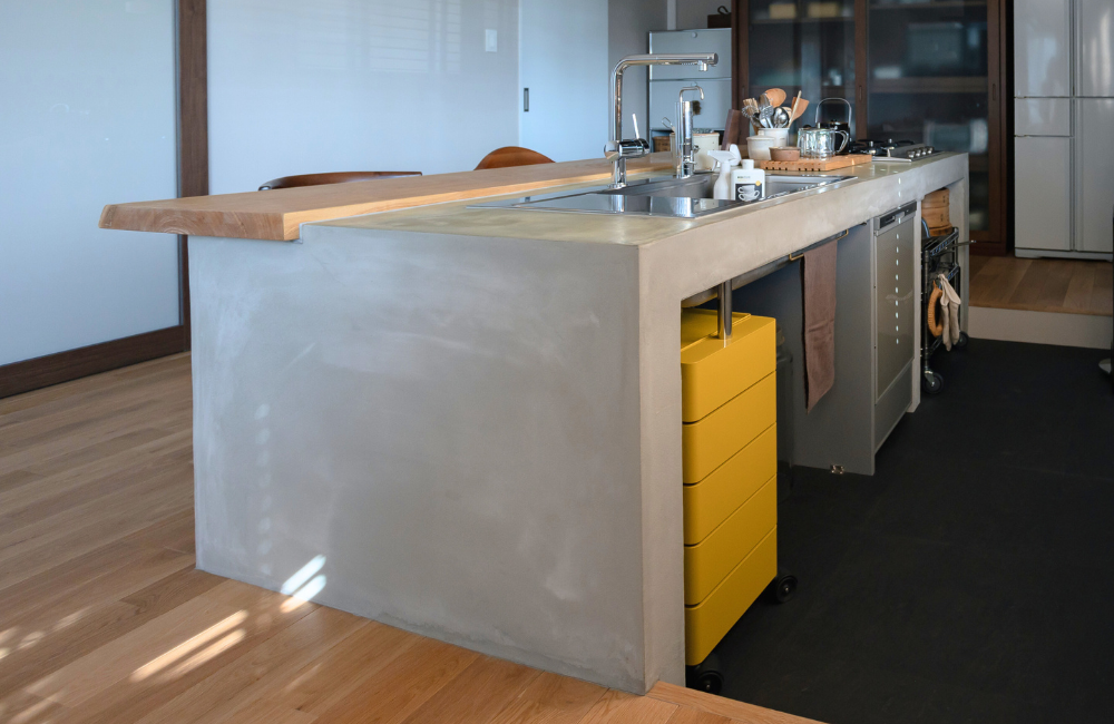 ”コンクリート×無垢の一枚板” で仕上げたこだわりのキッチン