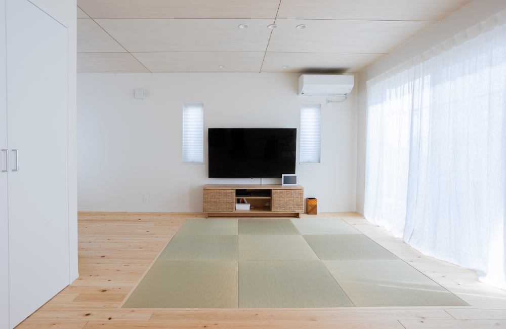 自然素材である畳は、周りの無垢材フローリングとの相性もピッタリ。カーペットやラグを敷く必要もないので、空間がスッキリと見えます。