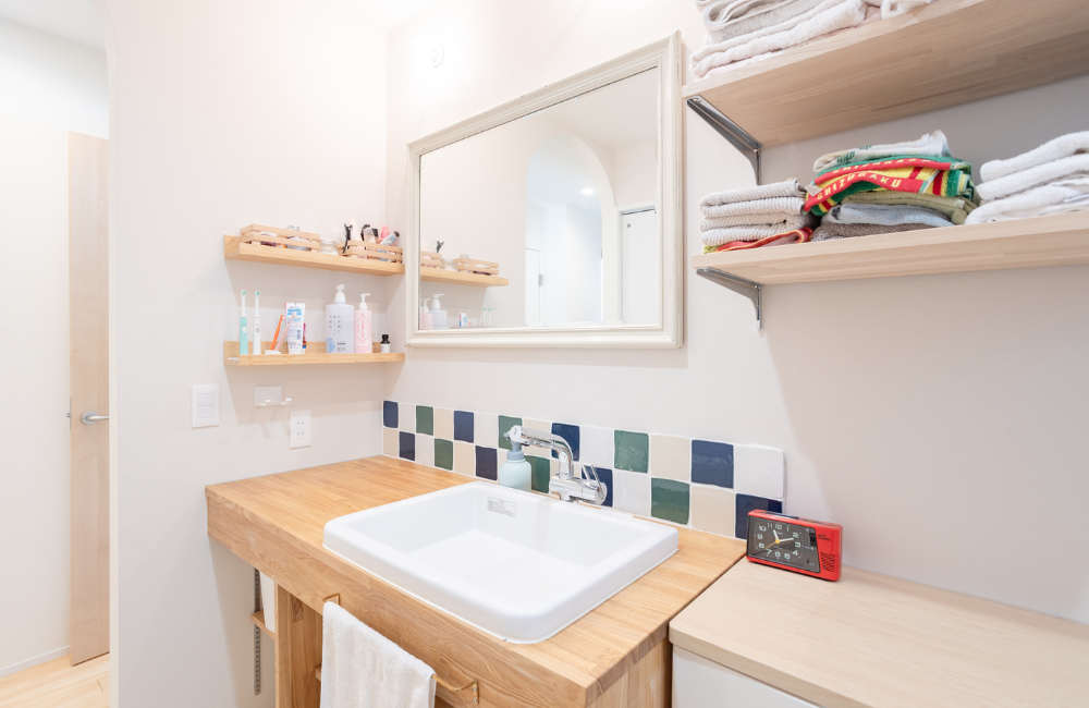 ホワイトを基調とした清潔感のある空間では、奥様お気に入りのタイルが良いアクセントになっていますね。