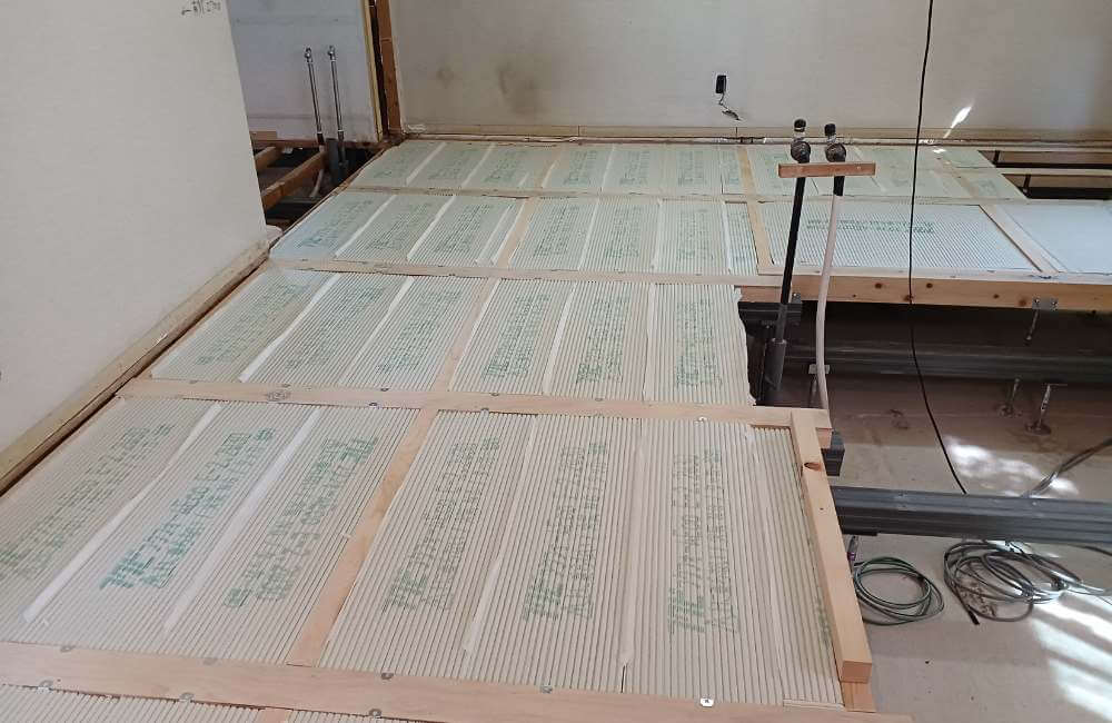 鋼製材は防蟻処理や湿気対策の面でも優れてはいますが、 今回のリノベで鋼製床からの底冷えを断つために、鋼製床の上に、熱を伝えにくい木材で新たに下地を組み、鋼材と居住空間を「縁切り」するための床下地を作っていきます。