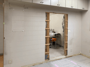 新設するキッチンはダウンフロアのキッチンにする予定なので、ダウンフロア用に床下地も造作していきます。
