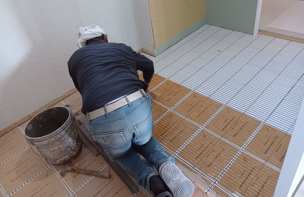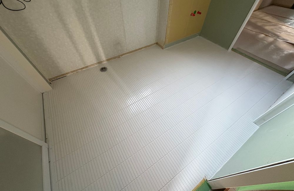 水まわりはどうしても実用性が優先されがちですが、毎日使う場所だからこそ「気分が上がる空間」にしたい。そんなお客様の想いから、洗面所の床をタイルを敷き詰める計画としました。