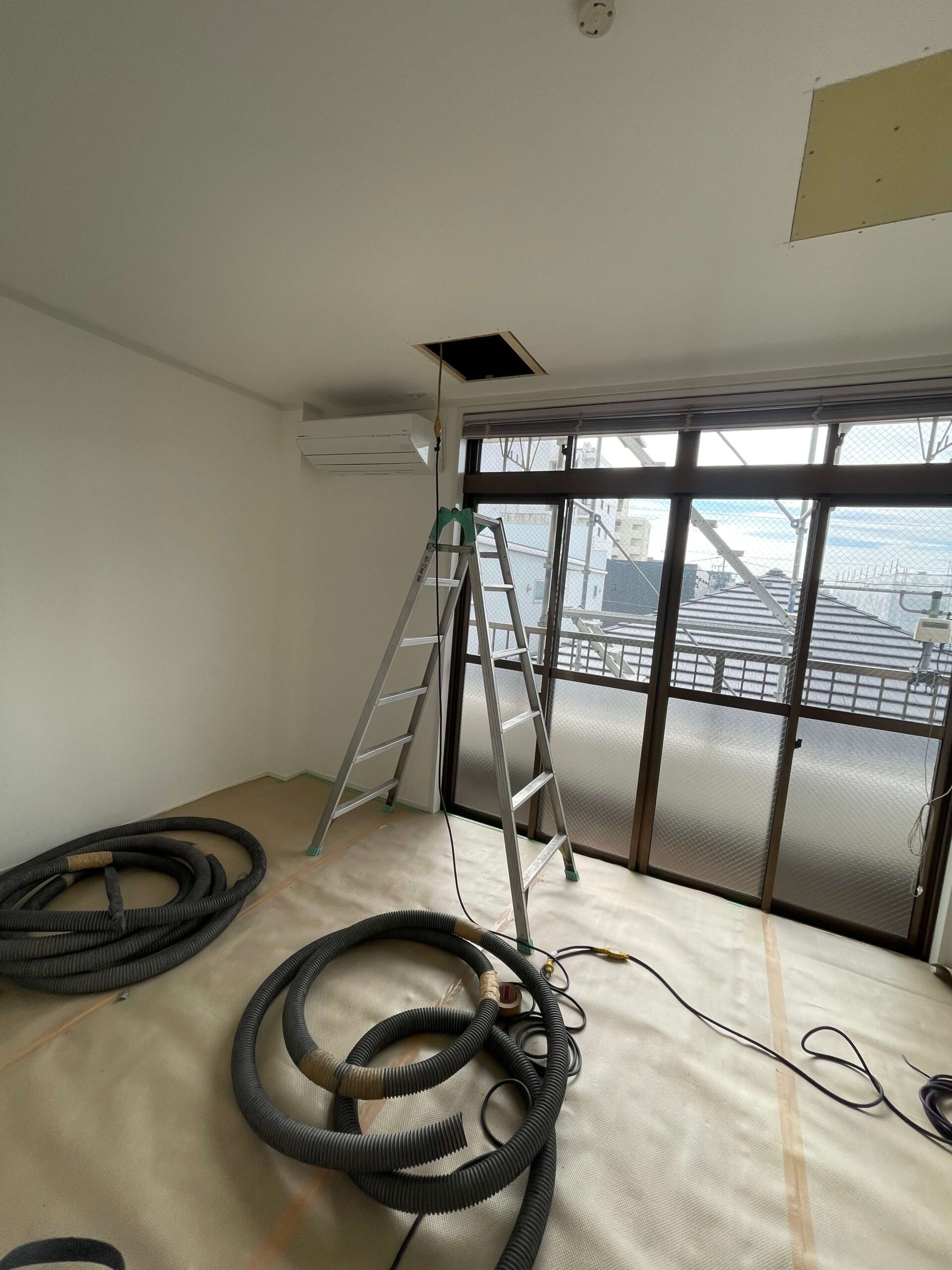まず、天井裏へ断熱材を均一に行き渡らせるため、室内の天井に必要最小限の開口を設けました。
