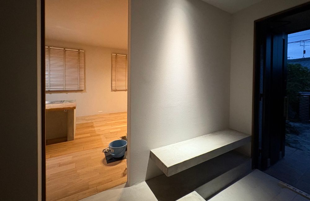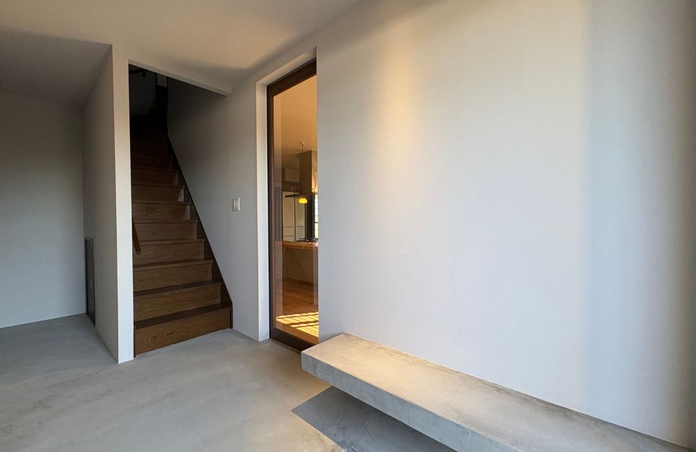 玄関を開けた瞬間から続く廊下も、コンクリート仕上げ。空間全体に静かな緊張感が生まれて、Y様邸らしい“素材のかっこよさ”が引き立つ入口になりました。