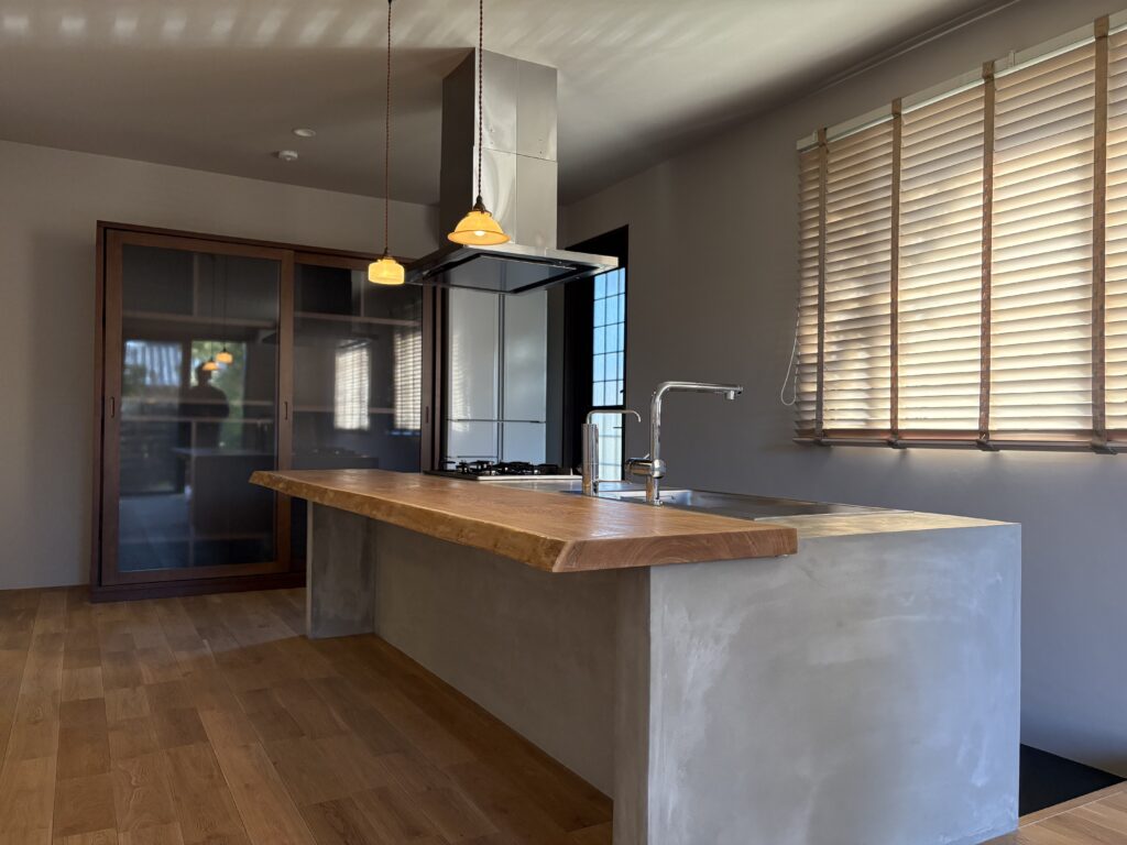 そして、コンクリートで一から造作したキッチン。Y様がずっと思い描いてこられた“やりたい形”を、私たちと一緒にひとつずつ形にしてくださったことに、完成した今、あらためて胸が熱くなりました。