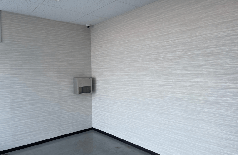 お取引先様や従業員の皆様が出入りされる入口・ホール空間の壁紙の貼り替えをご希望いただき、施工いたしました。