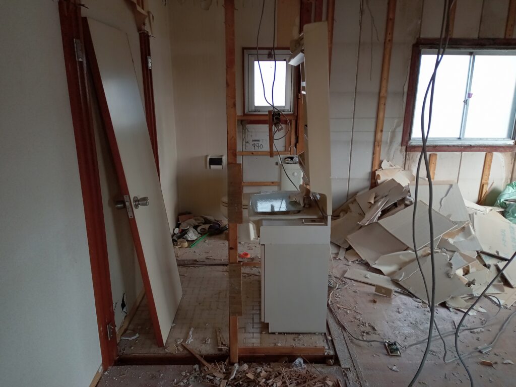 - 配管や電気設備もそのまま使うことがあるので、扱いに注意をする。