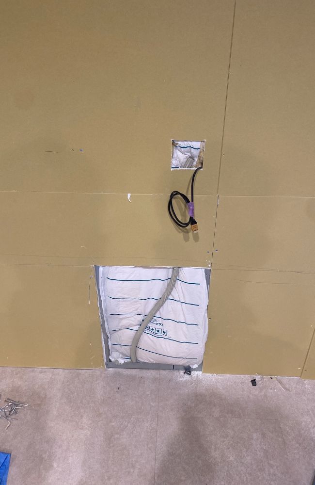 施工ではまず、壁の下地や配線ルートを確認しながら、HDMIケーブルを通す経路を確保していきます。