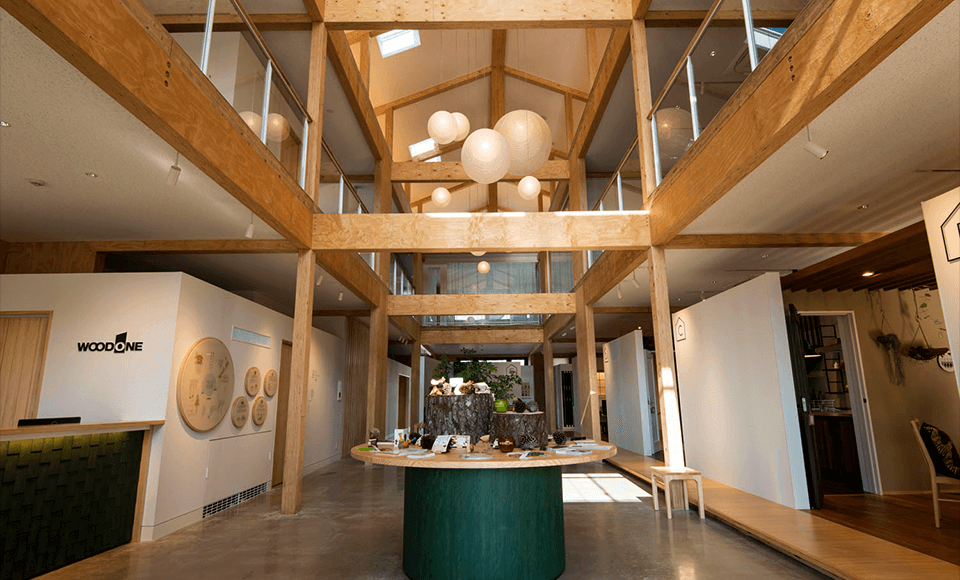 「無垢の木のぬくもりある暮らし」をテーマにした建物そのものが展示の一部になっている、そんな印象の空間でした。